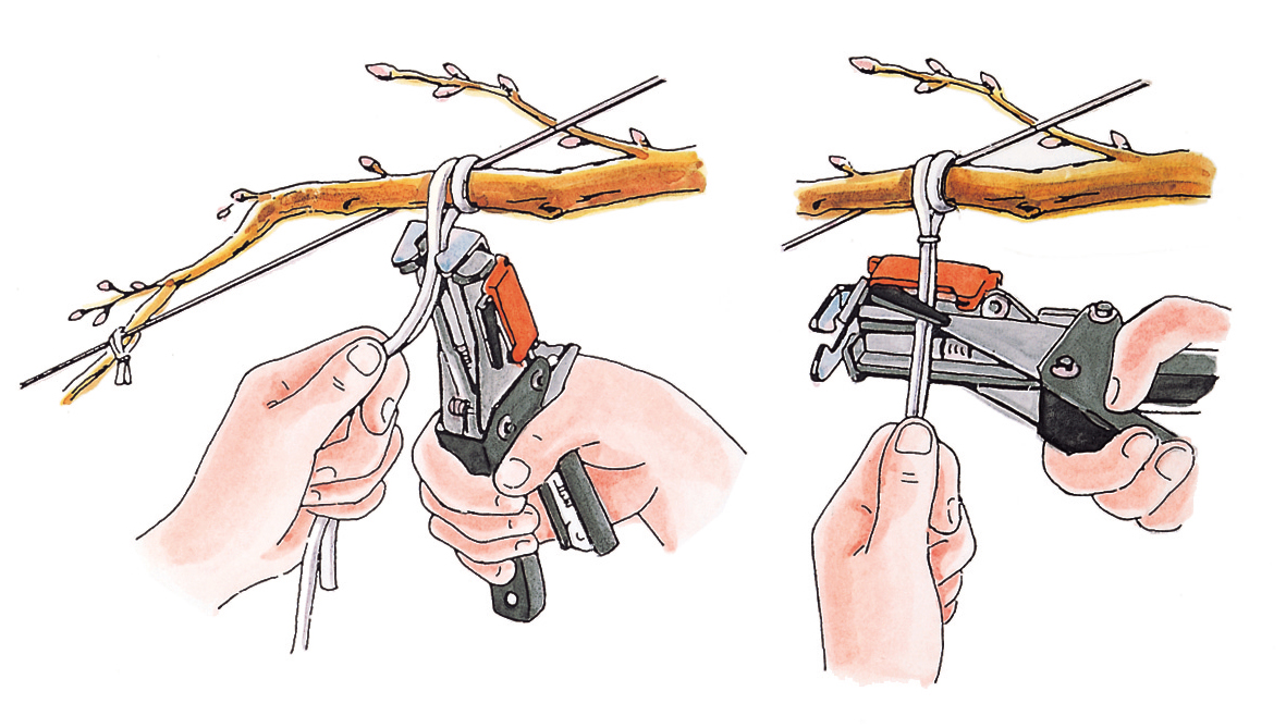 Подвязчик захватывает максимальный диаметр завязки - 4,5 мм.