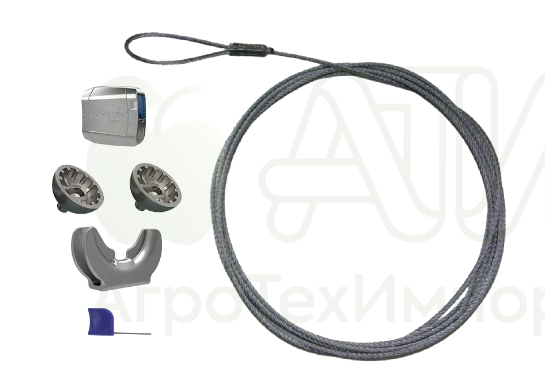 Комплект анкерных креплений Gripple Gpak M для металлических столбов включает в себя предварительно нарезанный, сплавленный отрезок троса, натяжитель Gripple, два адаптера, коуш.